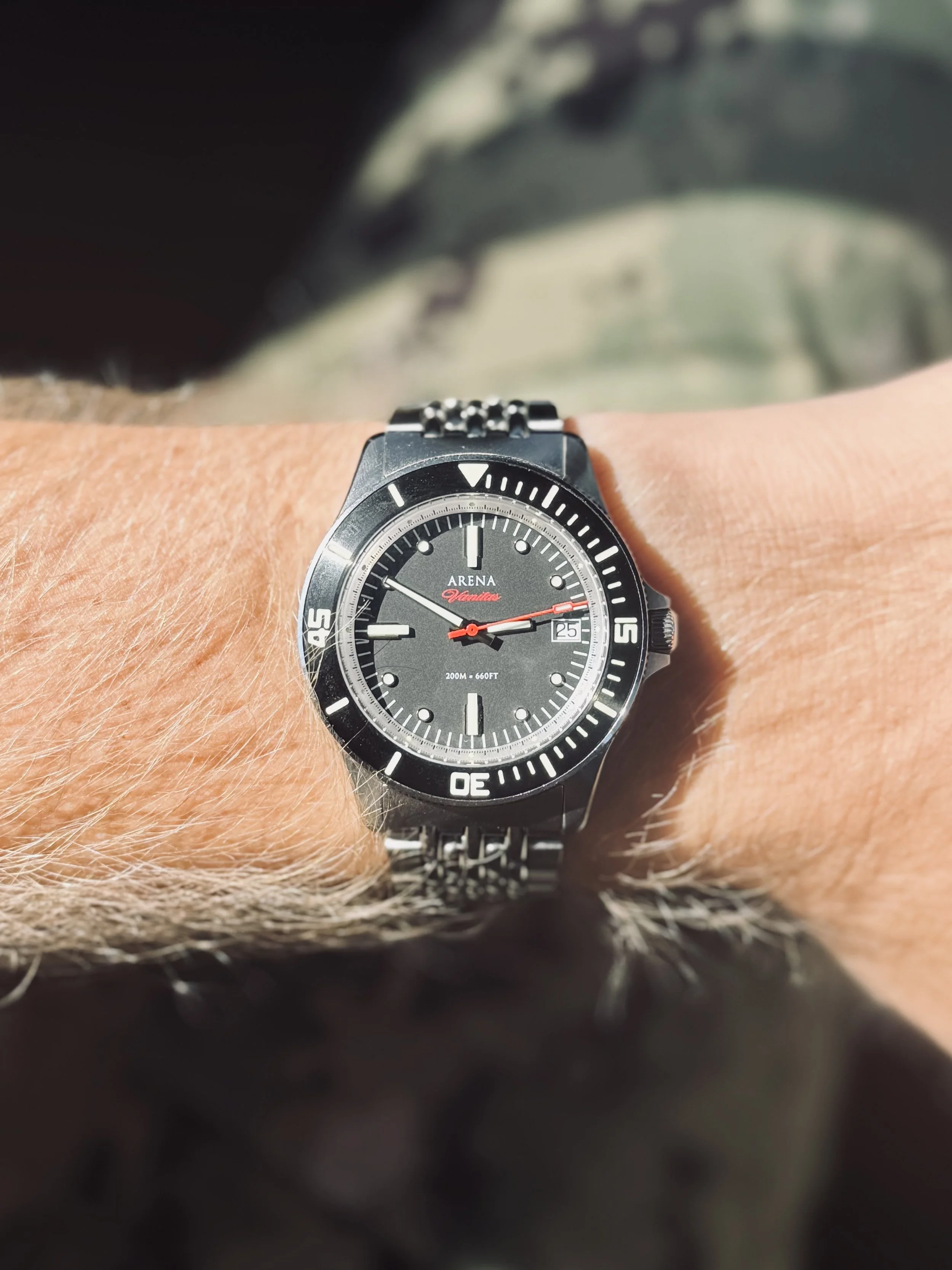 Let’s talk about the most underrated watch I’ve come across so far—the Vanitas from Arena Timepieces, limited to only 300 pieces. It has a timeless diver design that can easily be dressed up and worn with a suit, yet it’s durable enough to be worn in the field or through a deployment. What really makes this watch stand out is the balance between price, build quality, design, and presentation. This feels like a watch made for someone who spends a lot of time outdoors or in less than ideal environments, but still finds themselves wearing a suit from time to time—often more than they’d like.